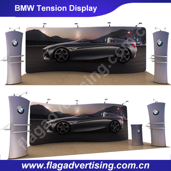 7 x 3 S Tension Display is perfect choice for 3m x 6m booth stand, with graphic size 6400mm x 2300cm and hardware display size 5981mm x 2210mm. Frame is made of sectioned alumium frame, which is strong and light weight. There are elestic rope inside of frame and there is marked "A", "B"'....on the end of each tube, so it is very easy for you to install frame within 2 minutes. Graphic is printed by 1440 dpi Vutek printer from USA and ISONIK from Italy. Fabric is elastic and vibrant. When it fit to frame, it looks so nice! We have a carry bag for you, you can put frame and fabric printing inside and take it anywhere to install without any tools! Yes, it is amazing! We have more size for you to choice, please refer info below.